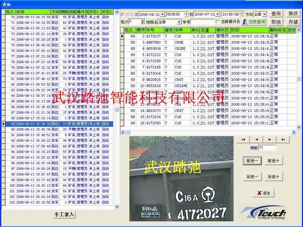 - 系统对于无标签的企业自备车或标签损坏的国铁车辆有弥补功能(依据抓拍到的图片),车号和重量准确对位。